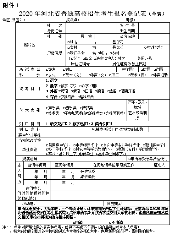 1.2020q河北省普通高校招生考生报名登记表(草表Q?/span>